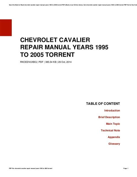 Presently you are looking with regard to an 2005 Cavalier Repair Manual Torrent example that will we provide here within some form of document formats many of these as PDF, Doc, Strength Point, and also images that will will make it simpler for you to create an 2005 Cavalier Repair Manual Torrent yourself. For a more clear look, you are able to open a few examples below. All of the good examples about 2005 Cavalier Repair Manual Torrent on this website, we get from a number of sources so you can create a better record of your own.